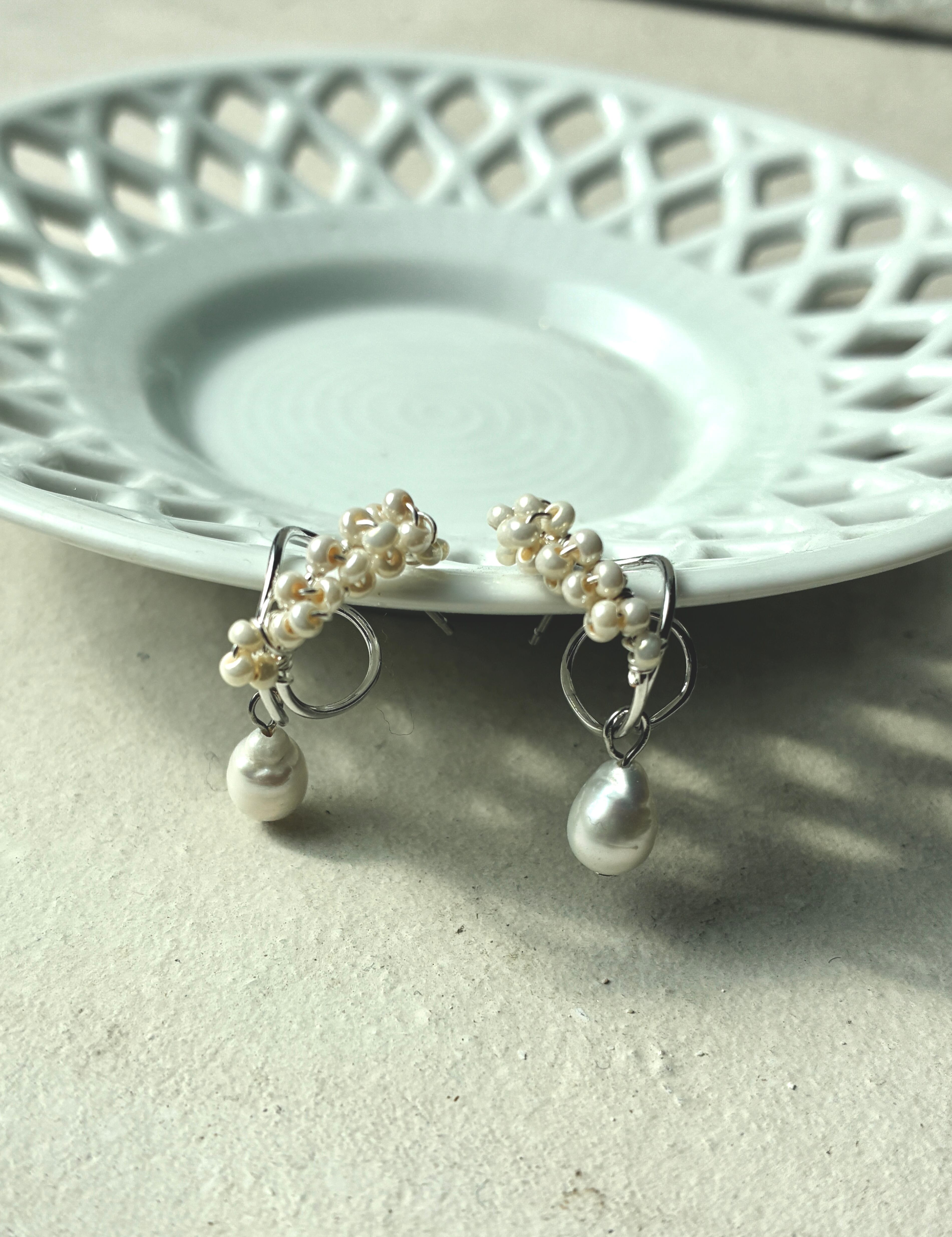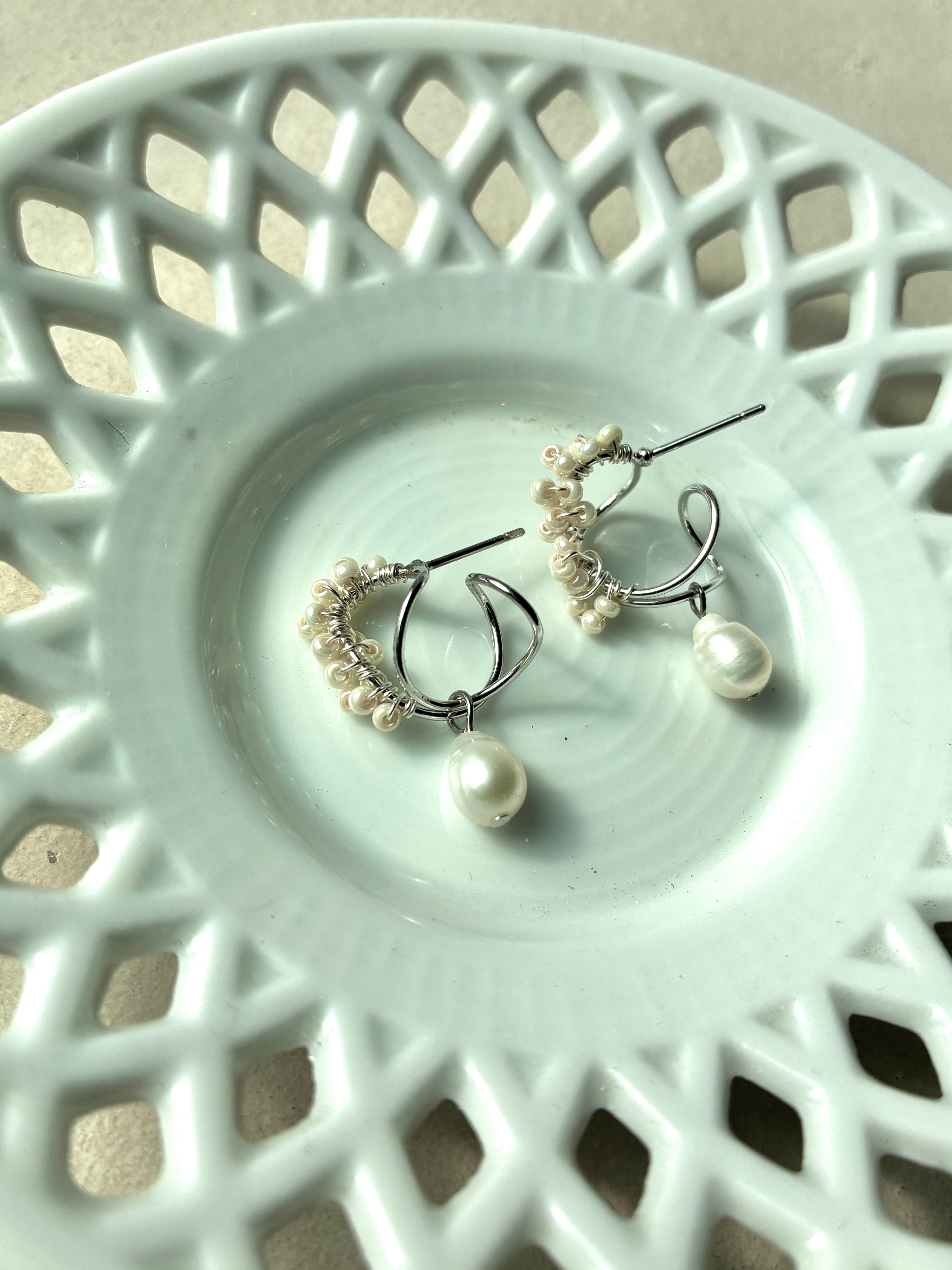 小粒の淡水パールを丁寧に編み込み、